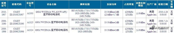 5月5日上午消息,新浪数码从中国无线电监测中心网站获悉,一款型号为A1303的“GSM/WCDMA/WLAN(WAPI)蓝牙移动电话机”通过检测,生产厂商是美国苹果公司(Apple.Inc)。