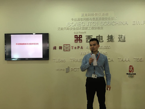 西电捷通工作人员正在向记者介绍公司情况